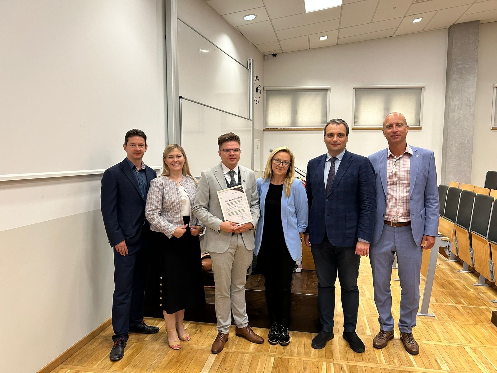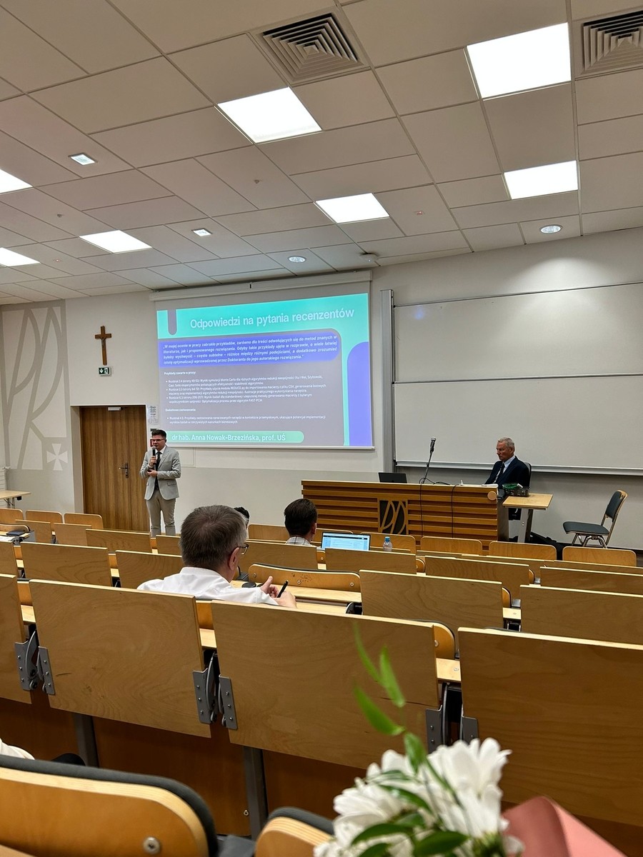 Rozprawa nosiła tytuł: Redukcja niespójności w macierzach porównań parami i nowy algorytm generowania losowych macierzy porównań parami o zadanym zakresie współczynników niespójności - FAST-PCM” zaś promotorem rozprawy był dr hab. inż. Dominik Strzałka, prof. PRz, zaś promotorem pomocniczym Pani dr Edyta Łukasik z Politechniki Lubelskiej.