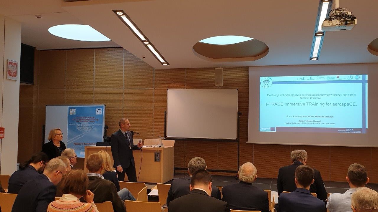 W dniu 3.12.2019 na Politechnice Rzeszowskiej odbyła się Konferencja Rady Partnerów Centrum Zaawansowanych Technologii AERONET ”Dolina Lotnicza” VIII Forum Współpracy NAUKA – GOSPODARKA. W wydarzeniu brali udział pracownicy Zakładu Systemów Złożonych: dr inż. Paweł Dymora, dr inż. Mirosław Mazurek oraz mgr inż. Bartosz Kowal. Podczas Konferencji między innymi zaprezentowane zostały dotychczasowe osiągnięcia i wyniki prac badawczych realizowanych w ramach projektu: „I-TRACE Immersive TRAining for aerospaCE”, realizowanego przez Wydział Elektrotechniki i Informatyki oraz Wydział Budowy Maszyn i Lotnictwa Politechniki Rzeszowskiej pod kierownictwem Pani prof. dr hab. inż. Romany Śliwy w ramach programu Erasmus+. Efekty realizacji projektu i-Trace zostały przygotowane i zaprezentowane przez dra inż. Mirosława Mazurka i dra inż. Pawła Dymorę, w prezentacji pt.: „Ewaluacja dobrych praktyk i potrzeb szkoleniowych w branży lotniczej w ramach projektu I-TRACE Immersive TRAining for aerospaCE.” W prezentacji szczegółowo omówiono rezultaty badań porównawczych dotyczących umiejętności i potrzeb zawodowych związanych z sektorem lotniczym na poziomie europejskim oraz wybrane najlepsze praktyki w treningu immersyjnym. Kolejnym etapem realizacji projektu będzie organizacja warsztatów i szkoleń dotyczących wdrażania symulacji komputerowych w procesie dydaktycznym i analiza procesów immersyjnego uczenia się. Szkolenia odbędą się w lutym 2020 roku.