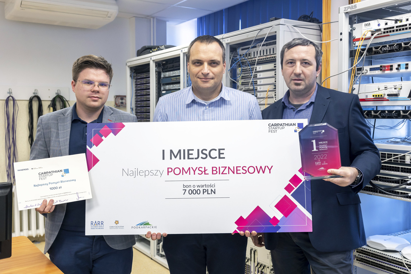 Dr Michał Piętal, dr hab. inż. Dominik Strzałka, prof. PRz i mgr inż. Paweł Kuraś z Zakładu Systemów Złożonych znaleźli się w gronie laureatów konkursu organizowanego w ramach Carpathian Startup Fest 2022. Projekt MoVA – Koniec ze spamem! autorstwa naszych pracowników zwyciężył w kategorii Idea Challenge.