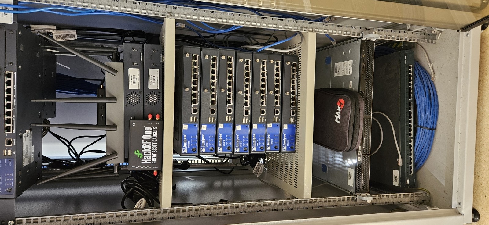 W dzisiejszym dynamicznie rozwijających się środowiskach cyfrowych, zapewnienie bezpieczeństwa danych i systemów informatycznych stało się kluczowym wyzwaniem dla organizacji. Jednakże różnorodność zastosowanych systemów, aplikacji i urządzeń implikuje wykorzystanie różnych, nie tylko o charakterze defensywnym ale proaktywnym metod przeciwdziałania zagrożeniom oraz okresowej kontroli ich skuteczności. Jedną z takich metod stały się testy penetracyjne, znane również jako ethical hacking. Dlatego w Zakładzie Systemów Złożonych wyposażono laboratorium w narzędzia do realizacji testów. Zastosowanie profesjonalnego sprzętu i oprogramowania pozwala na precyzyjne i kompleksowe badanie infrastruktury informatycznej. Dostępne narządzie pozwalają przeprowadzać symulowane atak, analizować ruch sieciowy oraz zachowanie użytkowników. Dodatkowo stały się bazą narzędzi dla działającego w zakładzie koła naukowego Something About IT Security. W skład laboratorium wchodzą: