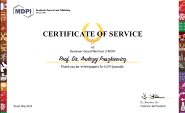 Dr inż. Andrzej Paszkiewicz prof. PRz został przyjęty do Reviewer Board czasopisma naukowego Electronics (ISSN 2079-9292)