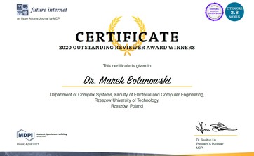 Dr inż. Marek Bolanowski prof. PRz został wyróżnionym recenzentem czasopisma Future Internet 2020.