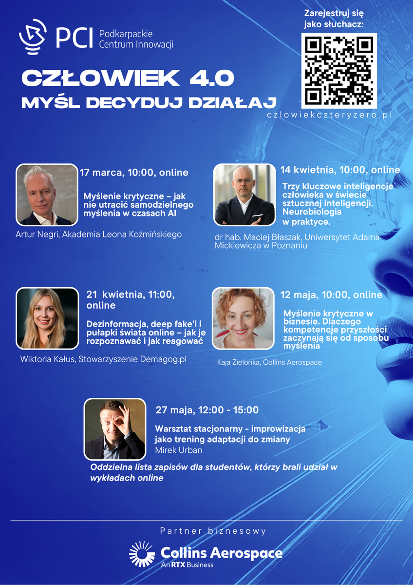 Wykład pokaże wyzwania współczesnego rynku pracy oraz znaczenie krytycznego myślenia w środowisku biznesowym – szczególnie w branżach wysokich technologii, gdzie odpowiedzialność za decyzje nadal spoczywa na człowieku.