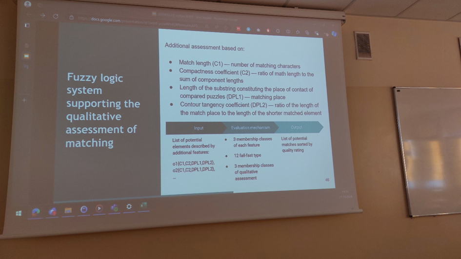 Wykład skierowany do studentów II stopnia, kierunek informatyka, pt. How linguistic measures can help assemble broken objects back together był w języku angielskim.