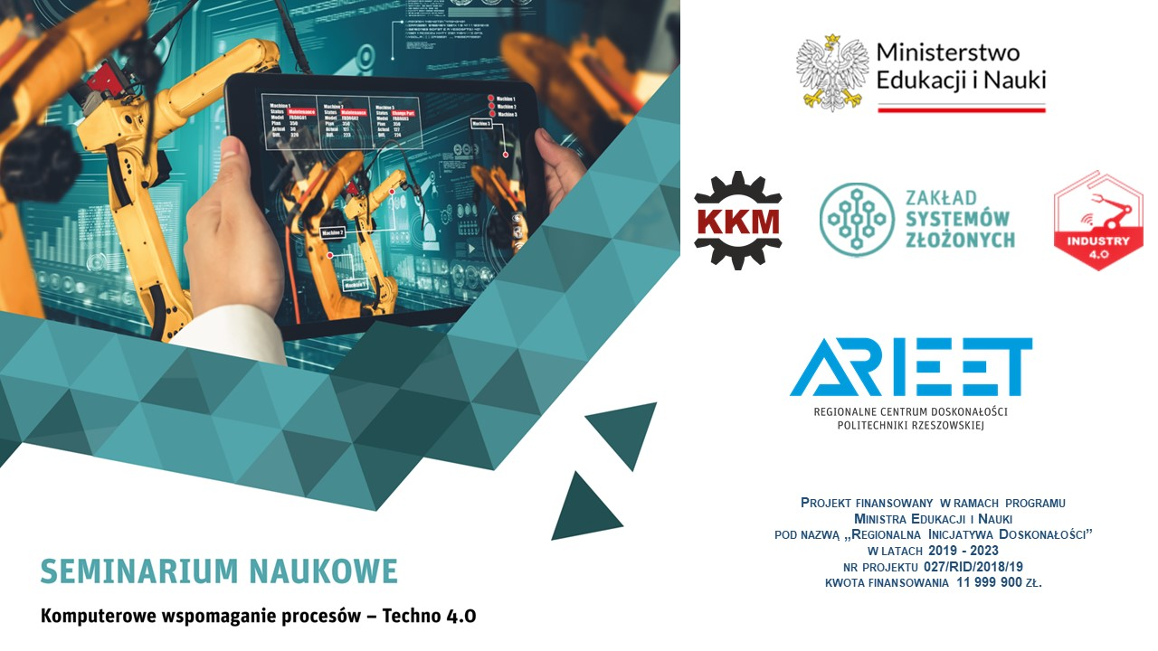 W dniu 19.10.2023 odbyło się w Rzeszowie seminarium naukowe pt. „Komputerowe wspomaganie procesów – Techno 4.0”. Seminarium zostało zorganizowane w Urban Lab w Rzeszowie, w celu zaprezentowania wyników badań uzyskanych w ramach zadania 1 pn. „Rozwój technologii dla potrzeb przemysłu lotniczego z uwzględnieniem uwarunkowań koncepcji Przemysł 4.0” w projekcie pn. „Regionalne Centrum Doskonałości Automatyki i Robotyki, Informatyki, Elektrotechniki, Elektroniki oraz Telekomunikacji Politechniki Rzeszowskiej" finansowanego ze środków Ministerstwa Edukacji i Nauki.