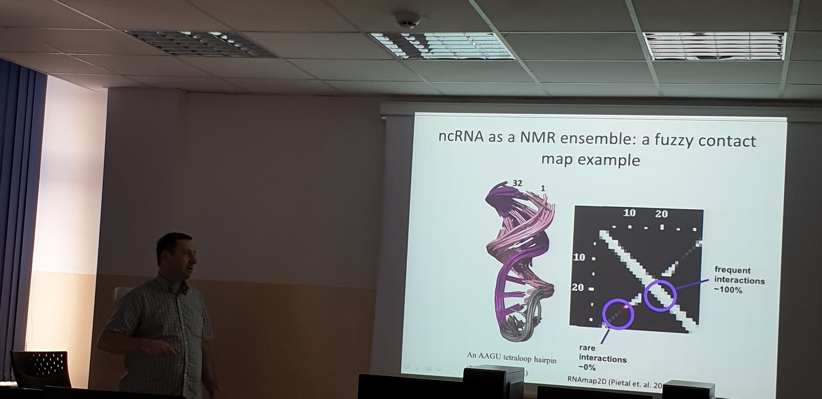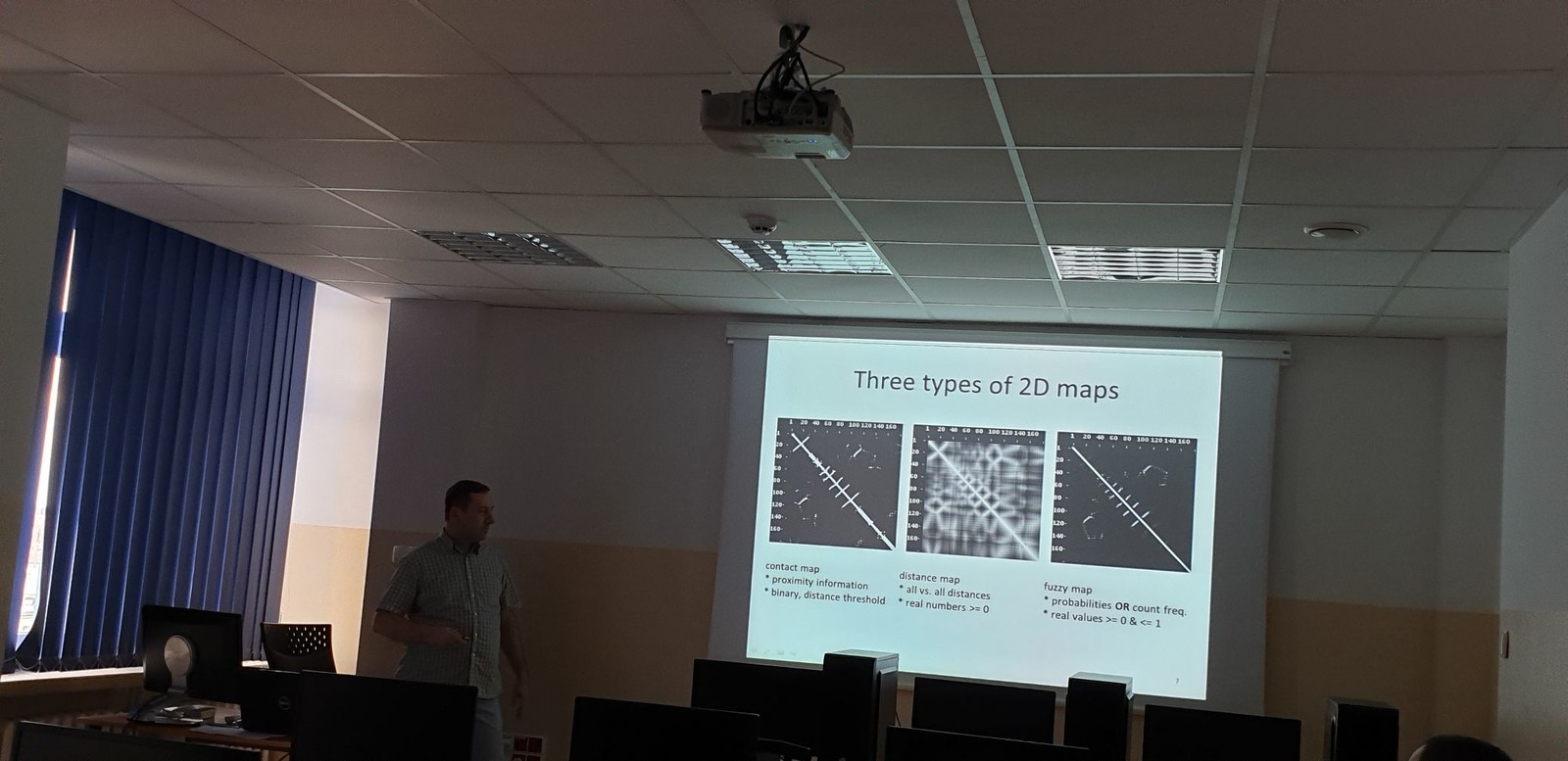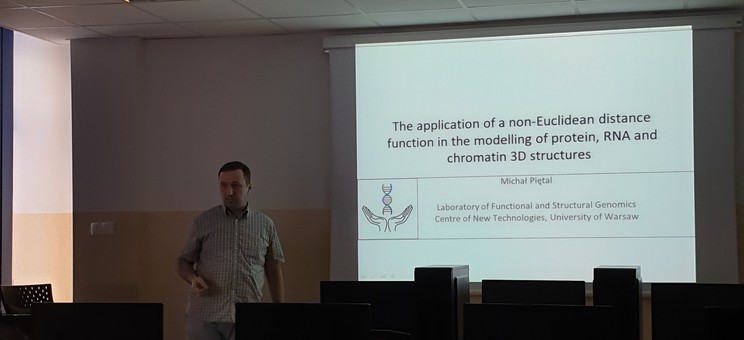 Korzystając z zaproszenia dr Michał Piętal wygłosił wykład pt. "Zastosowania nieeuklidesowej funkcji odległości w modelowaniu 3D struktur białek, RNA i chromatyny'