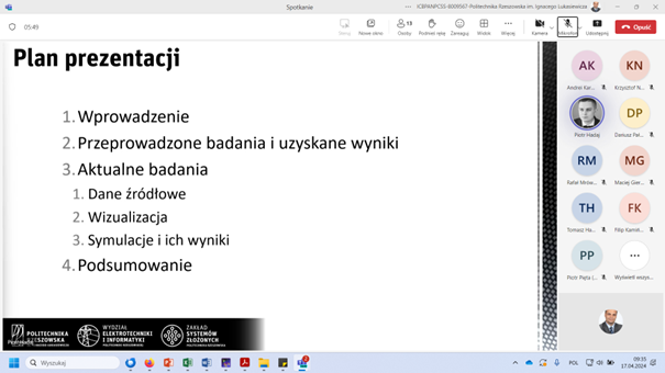 W dniu 17.04.2024 roku odbyło się seminarium on-line w Katedrze Informatyki Stosowanej AGH na którym mgr inż. Piotr Hadaj przedstawił postępy w rozwoju badań w obszarze tematu pracy doktorskiej.