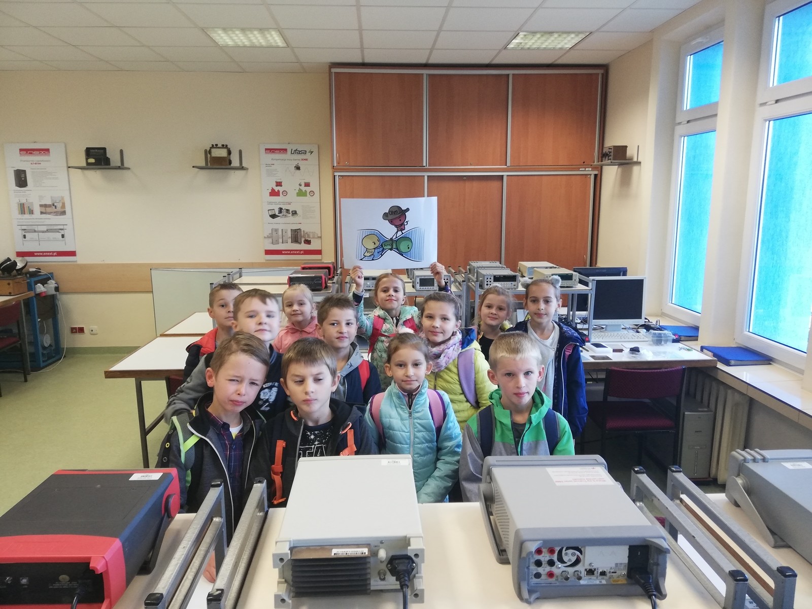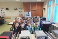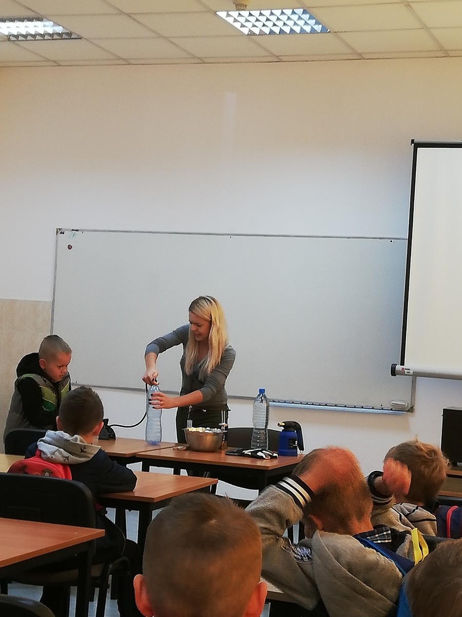 Dynamiczny rozwój nowoczesnych technologii ICT sprawia, że zainteresowani nimi są także najmłodsi. W piątek 12 października gościliśmy na Wydziale Elektrotechniki i Informatyki wycieczkę uczniów klasy drugiej ze Szkoły Podstawowej nr 1 w Ropczycach. Grupa 22 uczniów wraz z opiekunami miała szansę zobaczyć, jak wygląda Laboratorium Wirtualnej Rzeczywistości oraz Laboratorium systemów pomiarowych. Specjalne pokazy dla najmłodszych przygotowali mgr inż. Mateusz Salach z Zakładu Systemów Złożonych oraz dr inż. Jakub Wojturski z Katery Metrologii i Systemów Diagnostycznych. W Laboratorium wirtualnej rzeczywistości dzieci miały szansę zmierzyć się z wymaganiami, jakie stawiała przed nimi wirtualna gra; liczył się najlepszy wynik osiągnięty podczas jednej minuty gry. Także tajniki metrologii były odkrywane przez wszystkich zainteresowanych. Ponadto dzieci brały udział w pokazie z fizyki przygotowanym przez pracowników Katery Fizyki i Inżynierii Medycznej pod kierunkiem prof. T. Jasińskiego.