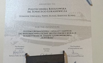 Projekt "Suntrail" - System wspomagający kurację kosmetykami uzdrowiskowymi - został wyróżniony przez Kapitułę Konkursową brązowym medalem Targów Wynalazków i Innowacji INTARG w Katowicach
