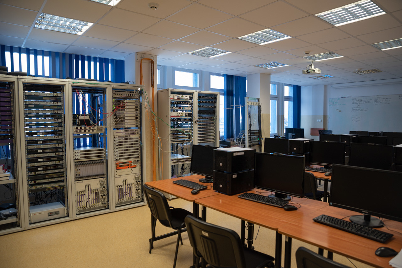 Science and research and teaching laboratory. Research conducted in the laboratory of computer networks, converged systems and complex ICT systems concern a wide range of issues in the field of design and operation of complex communication systems, including effective and trouble-free data transmission in the environment of ICT networks. The laboratory conducts research in the area of: network traffic analysis, its properties and impact on network infrastructure; analysis of long-term processes occurring in computer networks; research on mechanisms of load balancing and maintaining the reliability of network infrastructure, as well as ensuring the resistance to damage of network structures carrying out data transmission in critical infrastructures; automating the process of managing distributed systems, optimizing the use of elements of the transmission system (eg tolerance of damage, load balancing). The laboratory also performs tasks in the design and configuration of network infrastructure based on both a homogeneous and heterogeneous environment of computer networks. As part of the work, various configuration scenarios are tested based on widely accepted standards and network protocols as well as proprietary and newly created mechanisms and network solutions. The scope of work and exercises relates both to issues related to Enterpise class networks, operator networks, as well as industrial ones used, among others in Industry 4.0 and energy. Laboratory equipment also allows you to test ready-made solutions before implementing them for production or operation in the proof of concept scenario. Most of the laboratory equipment is also used by students during classes, during the preparation of diploma theses and during student internships.
